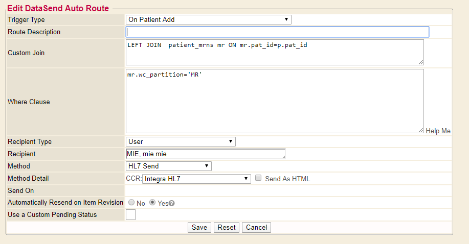 * This allows for more filtering to work with specific sets of patients. Requires some understanding of the Webchart DB schema. Generally requires MIE EDI team to build. However, manually copying Auto Route JOINs and WHERE Clauses into new Auto Routes is also possible.