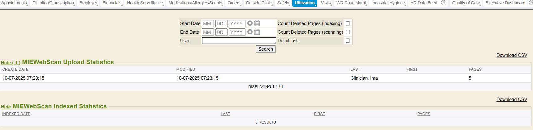 From the Reports sidemenu, there is a report named WebScan Report. Displays statistical details regarding scanned/uploaded batches and Indexed pages. For more information, please refer to the WebScan Report guide.