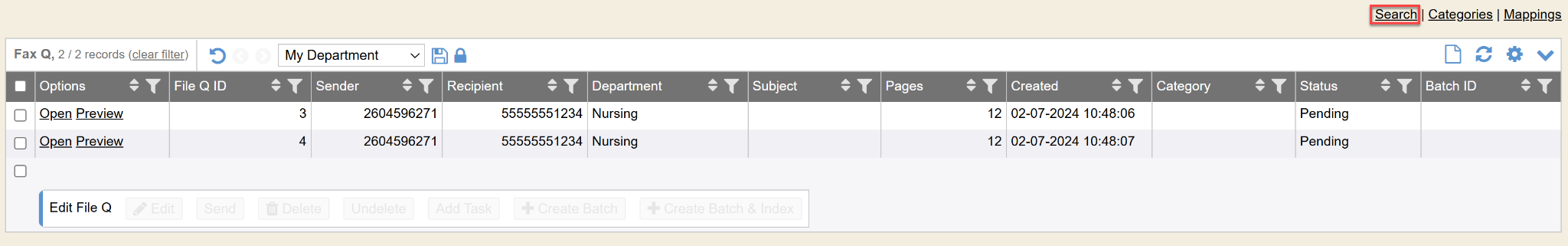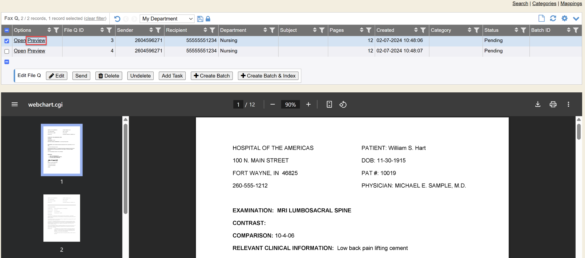Creating a ‘batch’ puts those faxes and all pages of the fax(es) into WebScan for someone to index into patient’s charts.