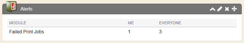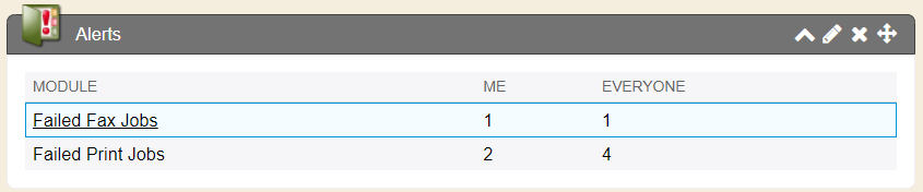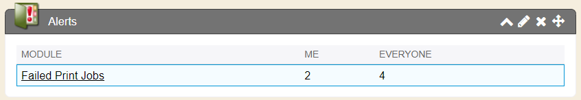 The Alerts summary module from the Quick View tab shows a summary of each failed module name (what type of job failed) and also shows a column of who the failed jobs are designated to. Me means the failed job was something you had rendered to send. Everyone means the failed job was something someone else rendered to send (if you preference is set to show alerts for ‘system’).