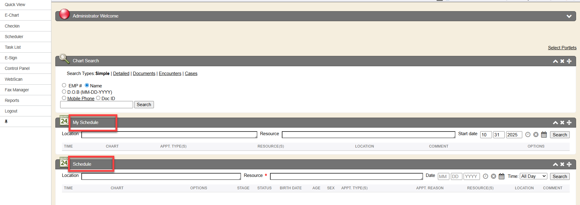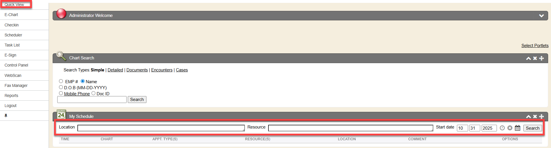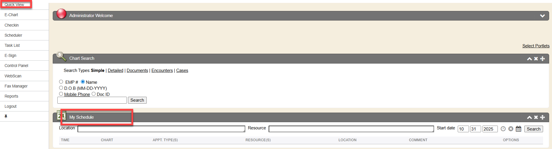 The Schedule portlet and/or the My Schedule portlet are optional portlets that can be configured to display on the Quick View sidemenu. For more information on how to use and configure the Quick View, please review Quick View Sidemenu.