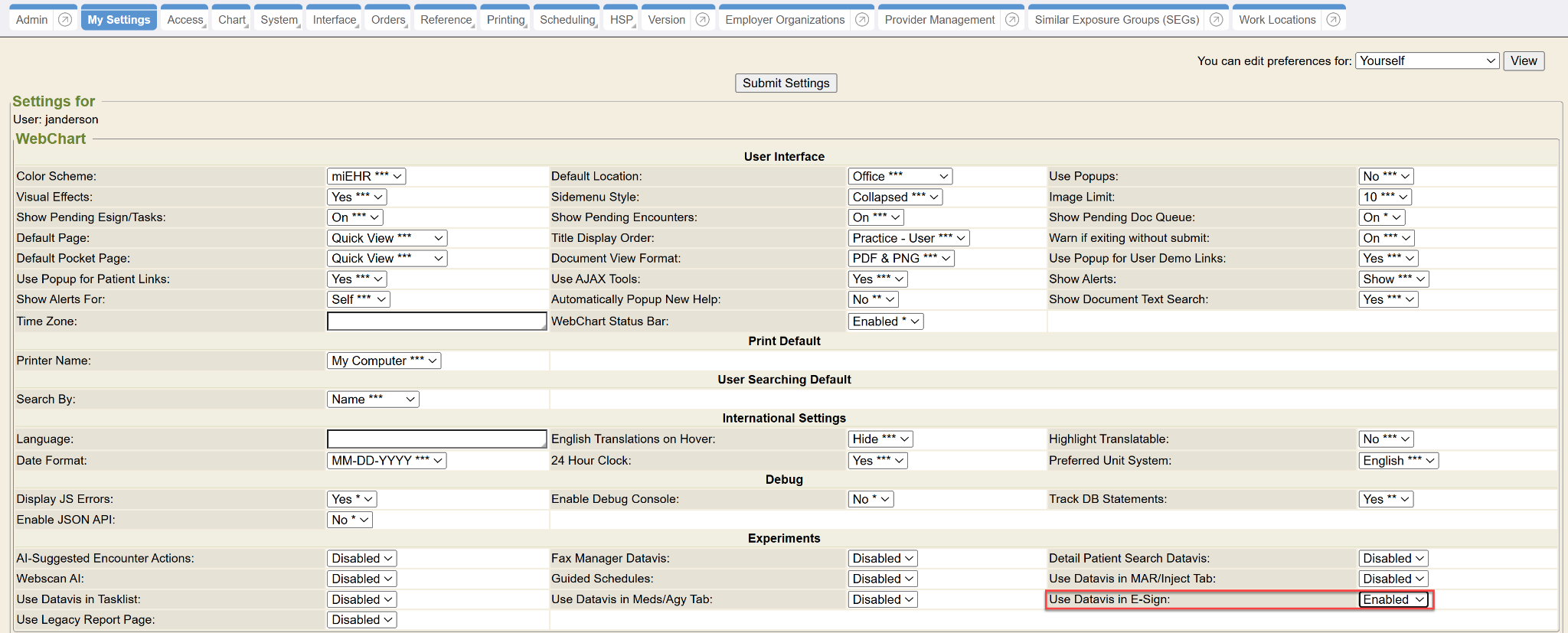 Users on RC202309 and newer can switch from the legacy E-Sign view to the DataVis format by changing a My Settings user preference of Use DataVis in E-sign to “Enabled”.