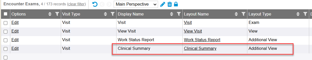 - The Clinical/Visit Summary is a standard additional view that is generated. An additional view for the Clinical (Visit) Summary is configured in the Encounter Exams editor.