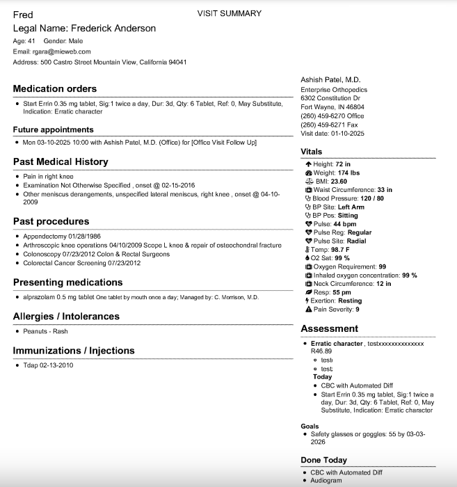 - If the Generate Clinical Education box gets checkmarked, the Patient Clinical Visit Summary has been updated to make it more uniform, compact, and easier to read as a handout given to the patient (or shared to the portal) on the conclusion of their visit. The updated Visit Summary uses 3 main layouts of: Clinical Summary, Vitals, & Vitals_list to populate the contents.
