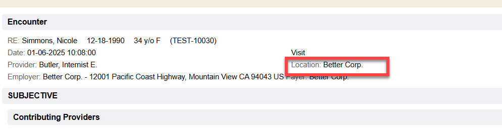 When system setting is enabled to Use Charts, the Contributing provider auto-complete selections only provider/clinician charts (for selections) that are linked/related to the same location (Provider Organization) selected in the top encounter info section for the overall performing provider’s performing location set on the encounter.