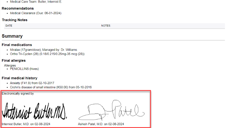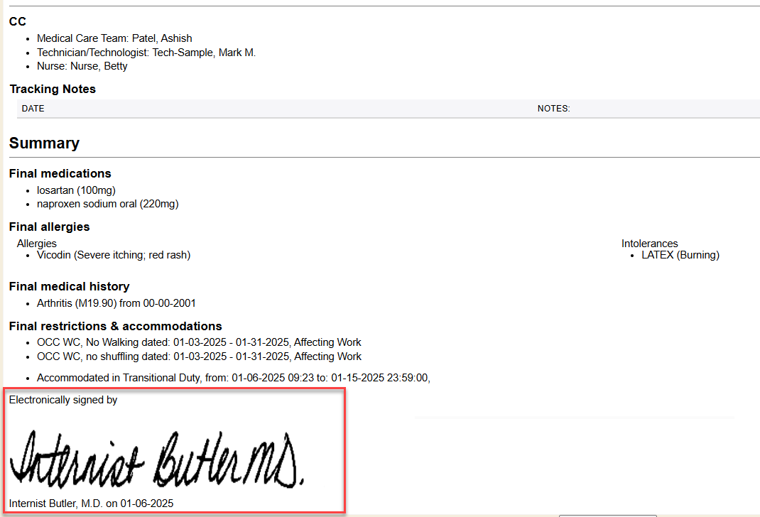 Anyone else that e-signs the archived/stored encounter document will also have their e-signature image (or just name) & e-signed date placed also in the Electronically signed by area of the archived/stored encounter document.