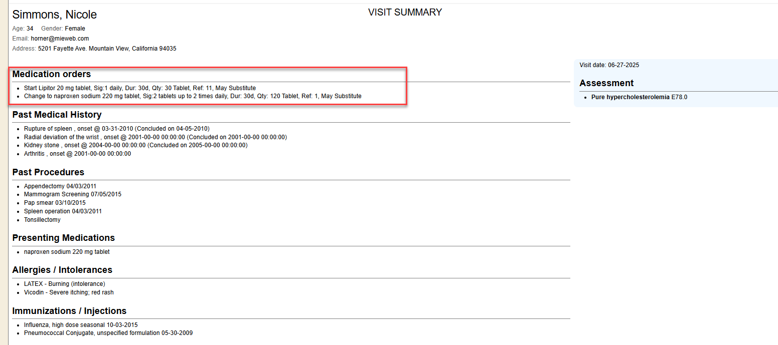 Clinical Visit Summary