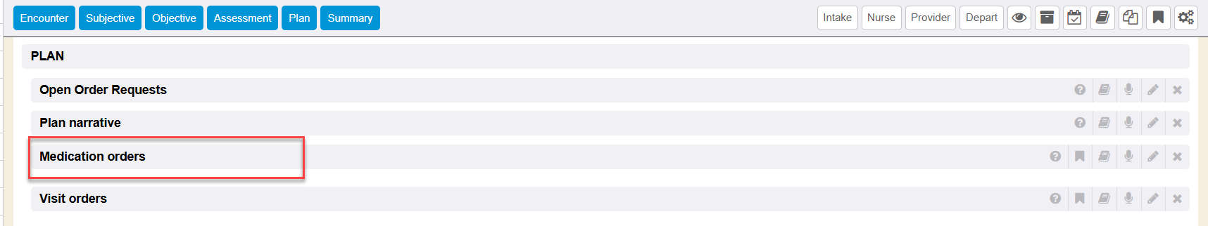 The Medication Orders encounter section provides the necessary tools for ordering, prescribing, managing, and tracking medications for the chart.