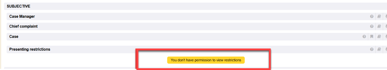If you do not have security permission to at least View for the Manage Restr and Accom, you will see a statement that you lack permission to view restrictions in this section and throughout the chart.