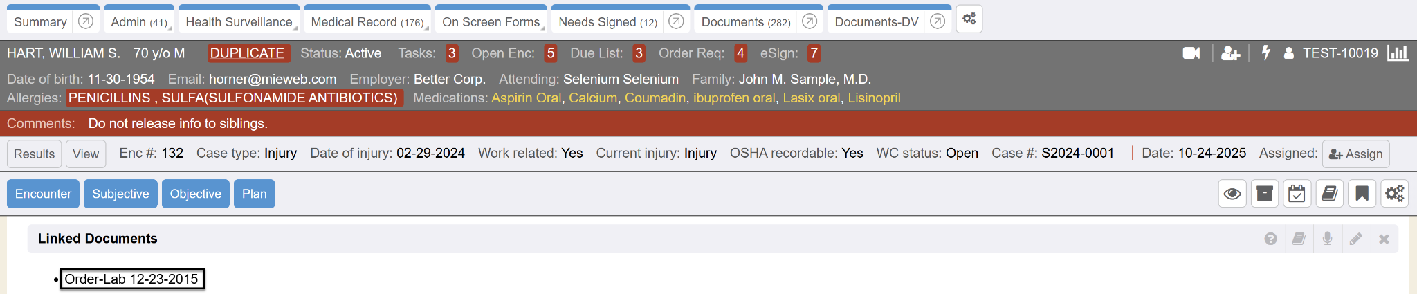 The linked document now displays in the Linked Document section of the Results encounter.
