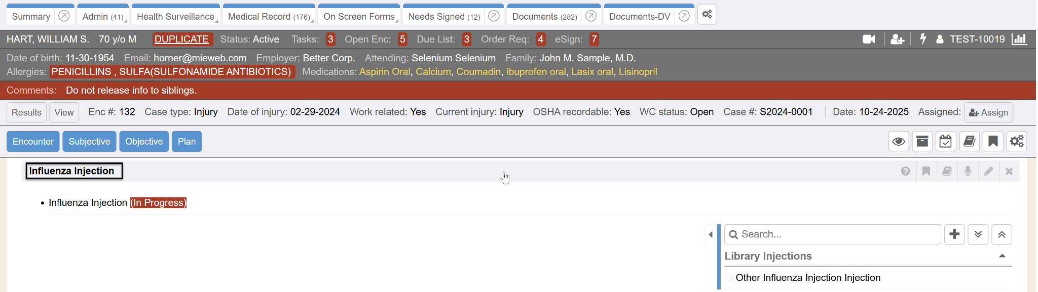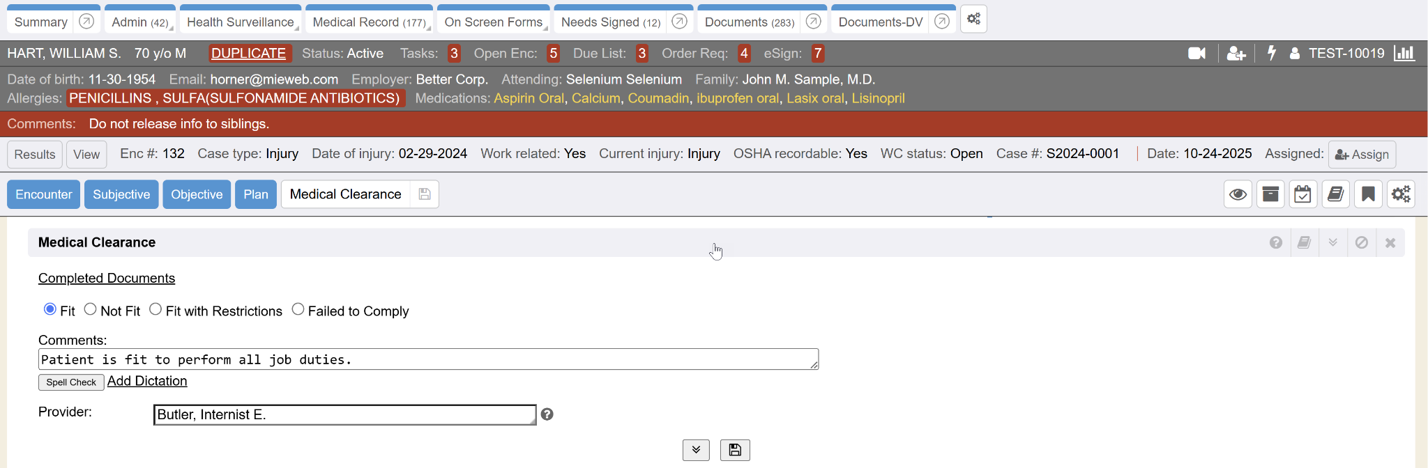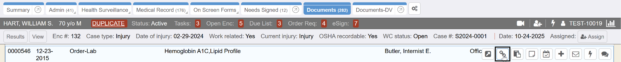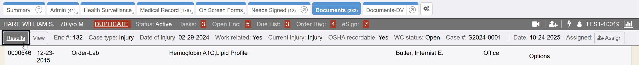 A case is a full report of a workplace injury, or incident, for an employee (patient). The case is created in an initial visit (encounter), and is then linked to subsequent visits. A case links all follow up visits (encounters), restrictions, accommodations, conditions, and nature of injury information. All of the documents pertaining to the case are grouped together within the chart for reporting purposes. There are several case types, which designate different required fields as well as state specific incident questions and forms. The terms case and incident may be used interchangeably in a system.