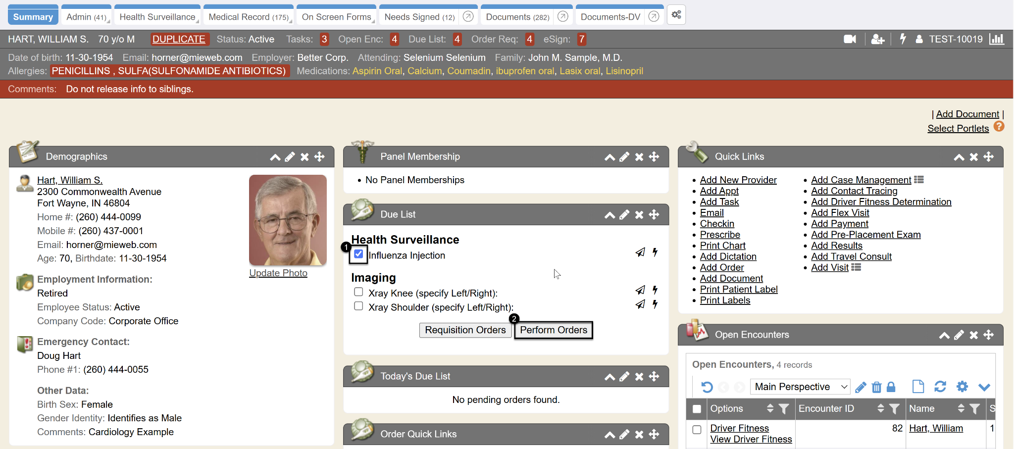 When a user selects Perform Order or the Lightning Bolt icon from the Due List, a Results encounter is automatically created/opened. Either click on the Lightning Bolt icon