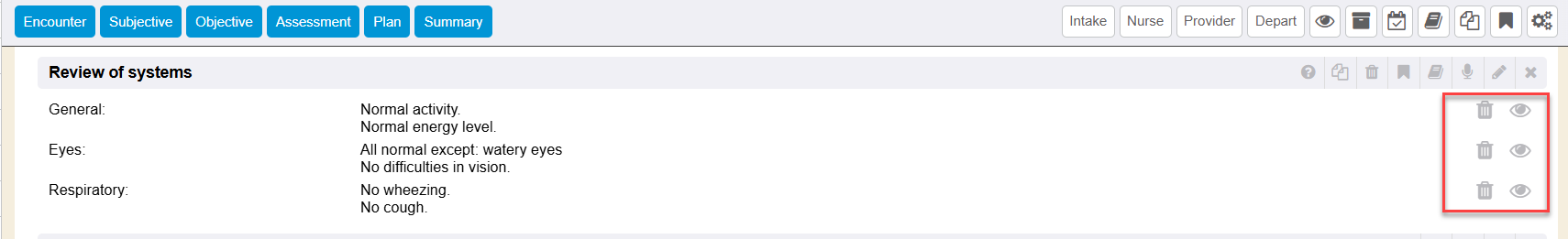 Also while the encounter section is in summary collapsed view, icon options next to the stored data will display.