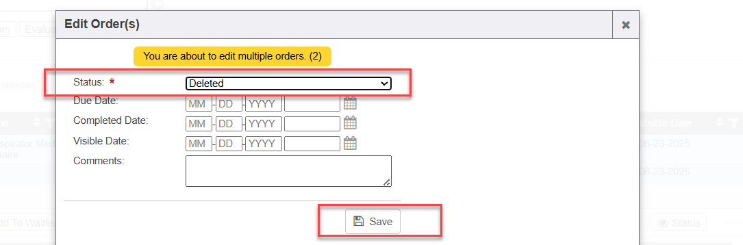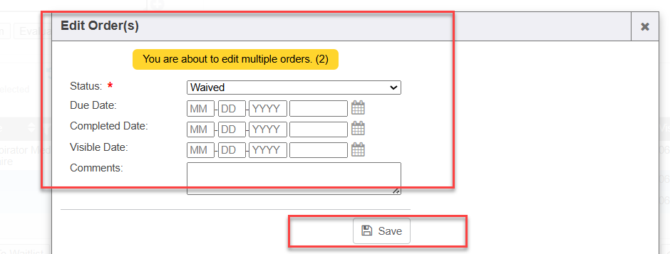 The Edit Orders pop-up window will display. It will tell you (in yellow) how many order items you selected that will be edited together.
