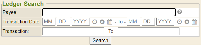 - In the Ledger Search section, in the Payee field, enter some or all of the name of the payee.