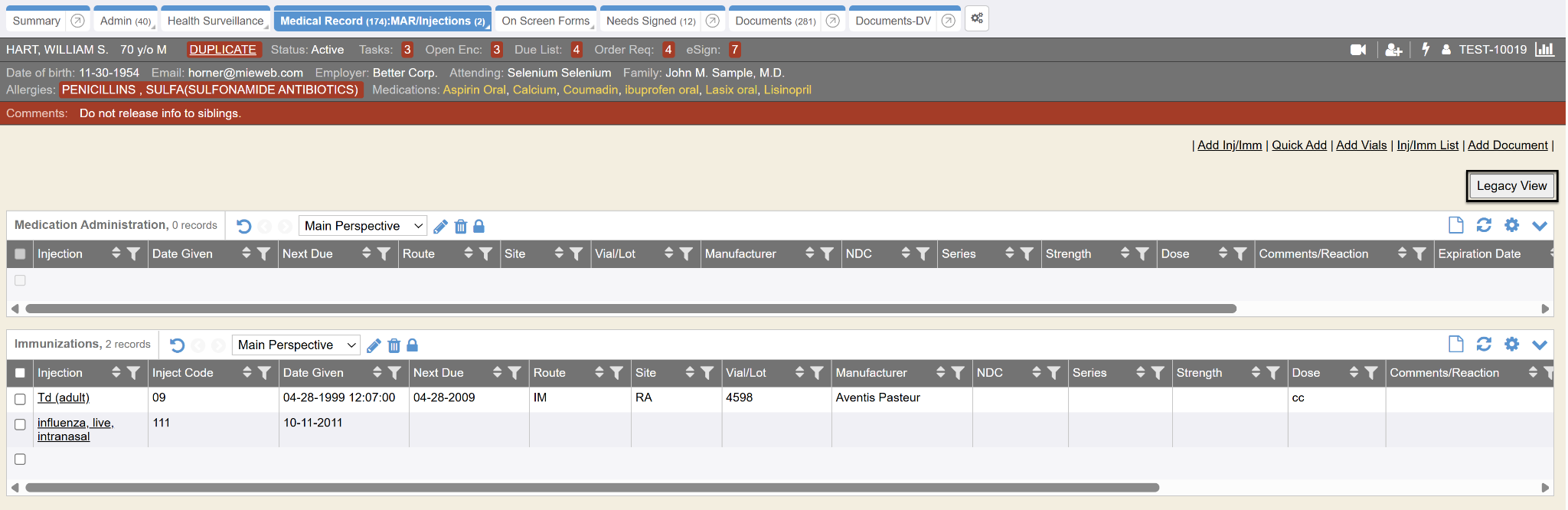 Injection/Immunization List is the complete, active summary list of injection / immunization records for the patient & vials entered.