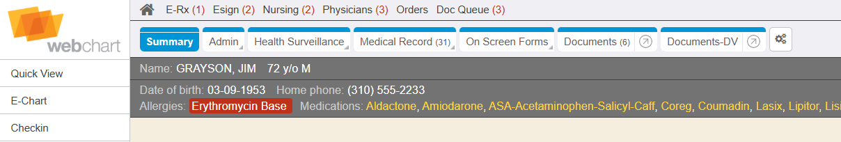 If you are (for example) a nurse (which is not a certified e-prescriber according to SureScripts), yet you have the security on to be able to work the incoming e-refills queue for your physician who is on vacation for a few days, you will not see the e-refills alert at the top of your screen. You would have to go into E-Chart sidemenu tab and go into the E-Rx tab at the top. If you have security permission to manage e-rx refills for others, this is where you would find those pending refills to work on. The ALL E-REFILLS TAB is where you go to work those (see other help instructions named E-Refills-ALL E-REFILLS tab.pdf).