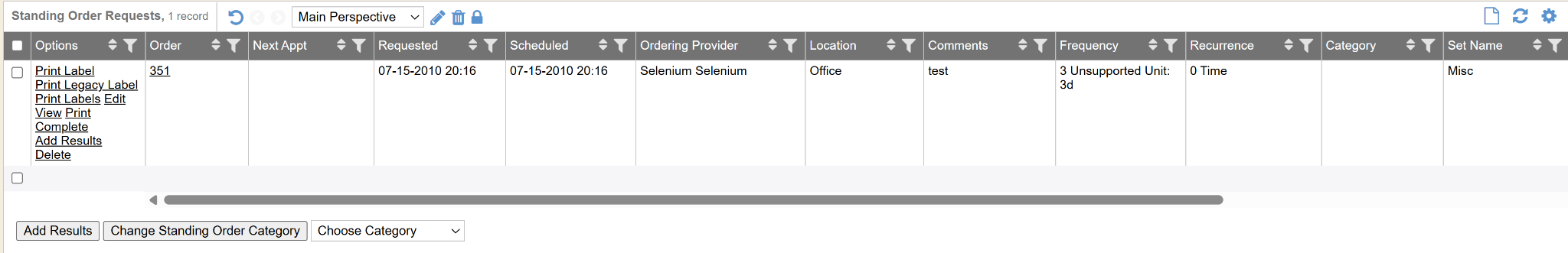 Labels can also be performed from the list of standing orders for the patient (in order requests module)