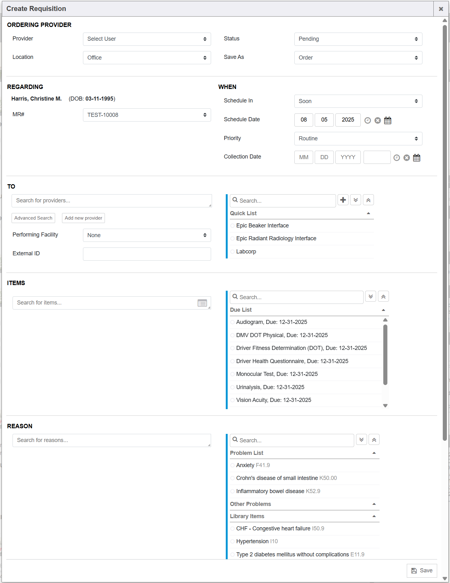 - Collection Date: Some orders may require a collection date, which is the date the specimen was collected.