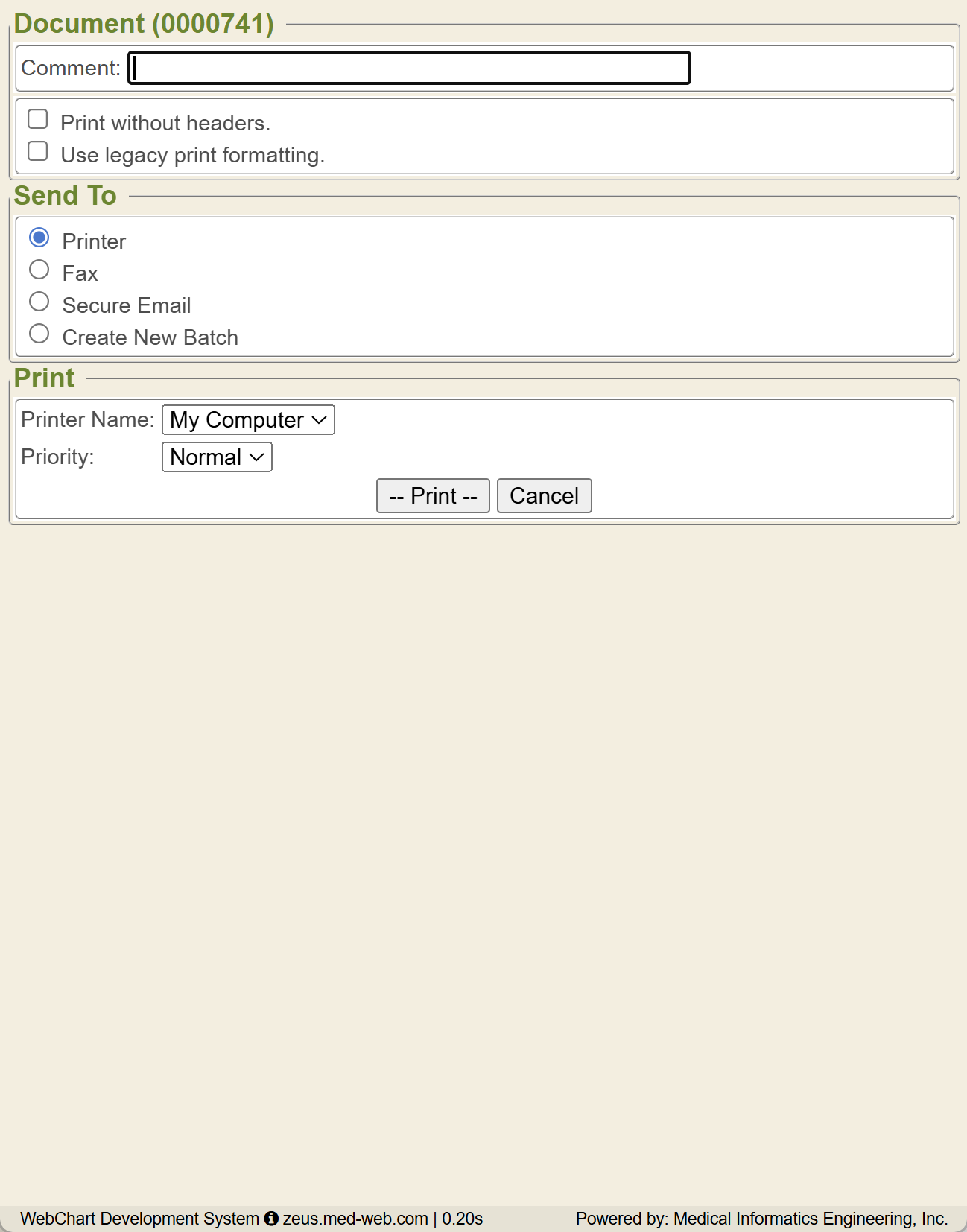 - MR# and Name will automatically be filled out since you are in the specific patient’s e-chart. The MR# dropdown defaults to the MR number in respect to the USERS “starting partition” preference default partition if the patient has an MR number with that partition