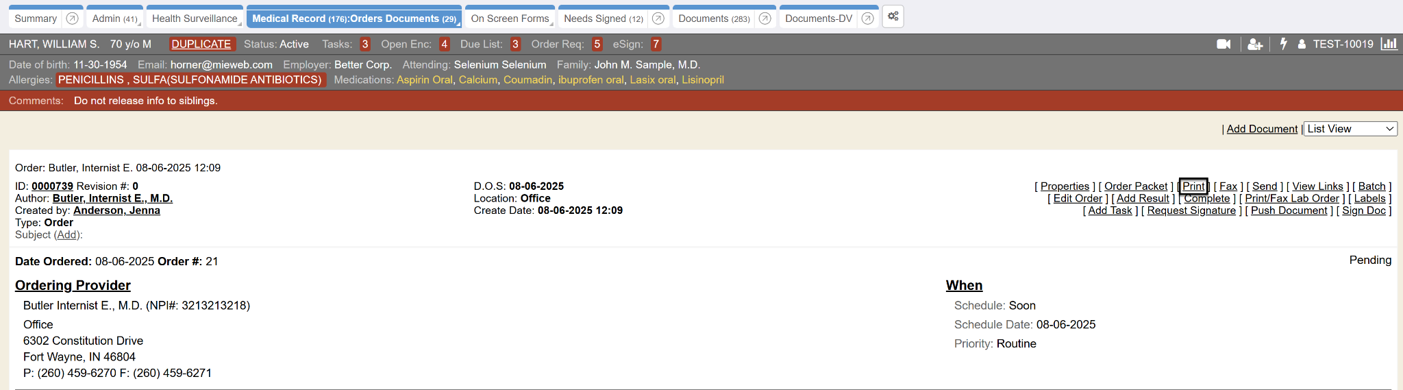 Instructions: Free type any instructions for the patient regarding this order. These instructions may or may not print on the order sheet, depending on how your practice decided to layout the printable order sheet.