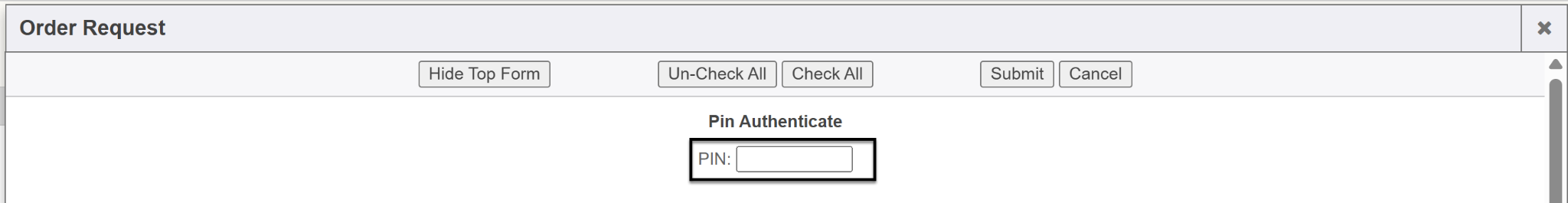 When you click add to add an order for a patient, you would then see at the beginning of the order the field PIN Authenticate. This means your practice has requested that users enter their PIN (personal identification number) to access and add orders for patients. If you see this field, you cannot create or edit an order for the patient until you enter your PIN number first. This gives you access to add or edit an order then and others cannot.