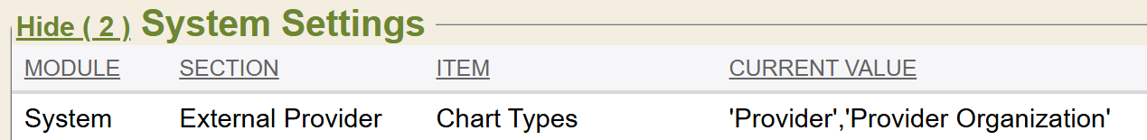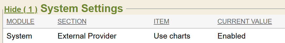 The specific chart types to be looked at in resulting choices in the Advanced Search must also be set in the system setting System, External Provider, Chart Types.