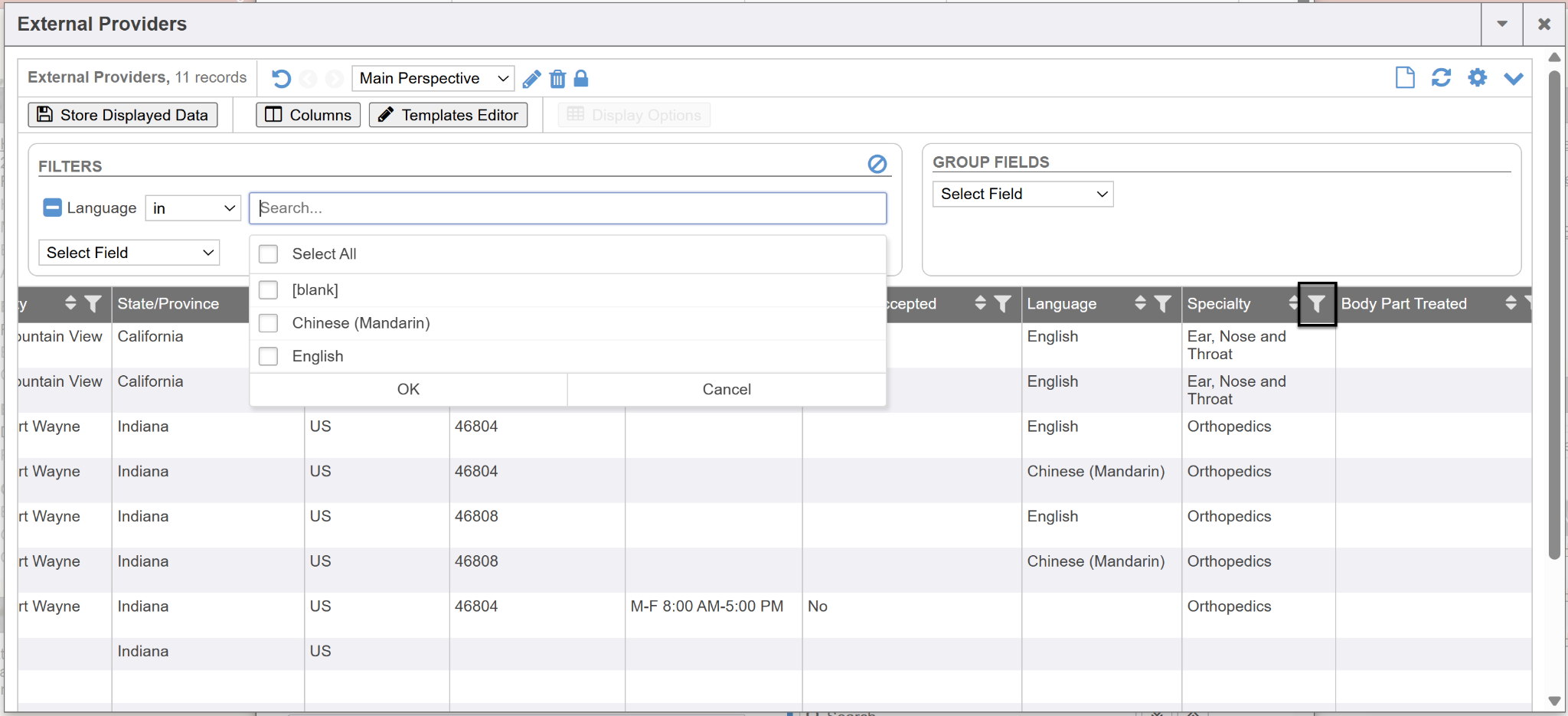 You can also use the filter feature on any column by clicking the ? icon on any column. You can filter the selections on this screen to perhaps only display to you providers that specialize in a particular language. You can utilize the filter on any column of this grid.