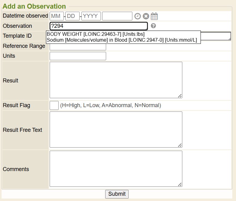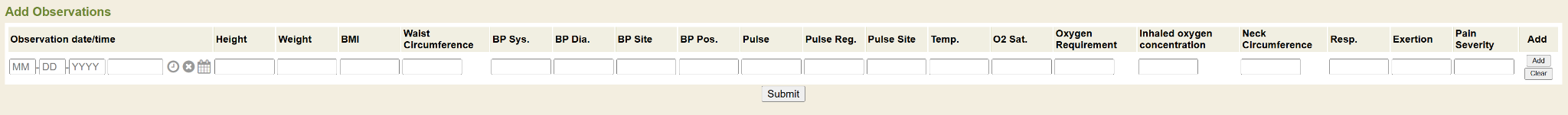 Click Submit to enter this observation into the patient’s chart.