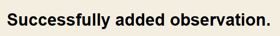 You will get a confirmation message if you successfully added an observation.
