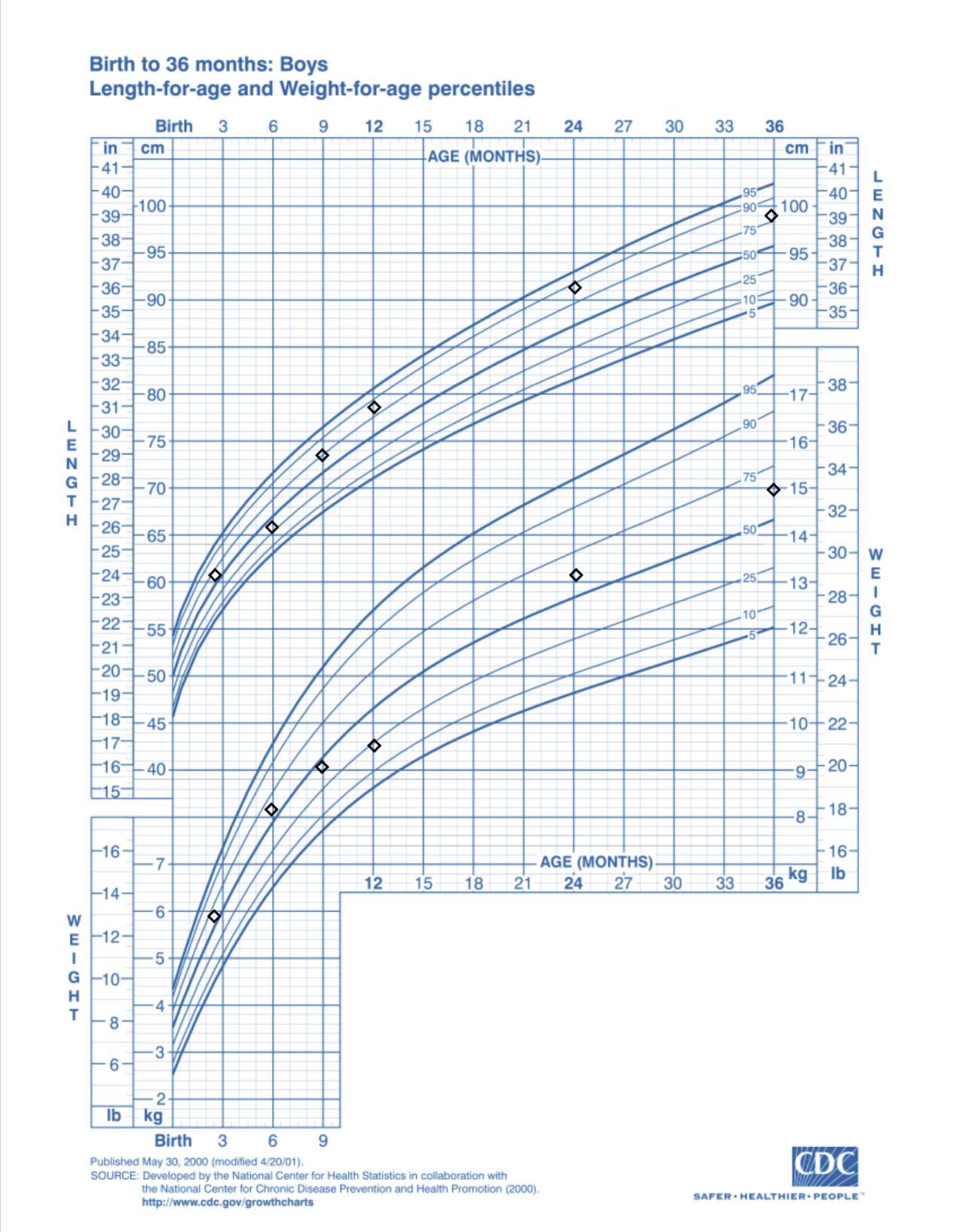 Once you select a chart from the drop-down, a window with the corresponding CDC chart will display. If any matching observations exist, they will be plotted on the chart.
