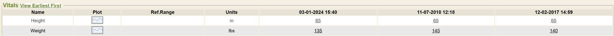 When you click on Search Observations, it is arranged in date order. You can also click the view most recent first link and it will flip the order. The observation _name_s are listed in alphabetical order along the left side. The observation values (results) are in date order along the right of the name. Observation results with units of lbs (weights) will now display as a combination of pounds and ounces if the number of pounds is under 30.