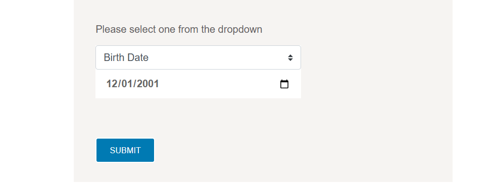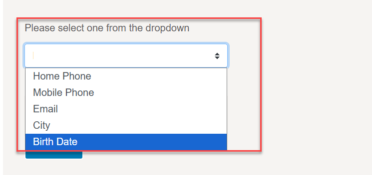 The user must verify a demographic element, before they can proceed to request to reset their password since they forgot their password. From the drop-down, select the demographic element to verify a match to.
