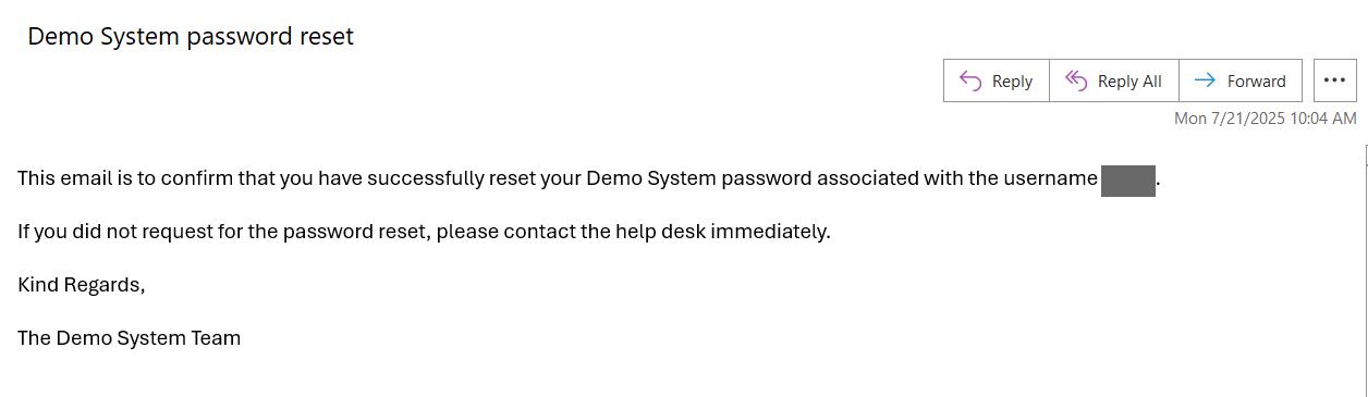 Upon successful password reset, the user will also receive an email notification of the successful password reset.