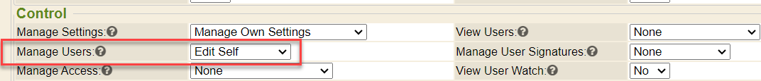 Users that log into a portal with a manual login and password, also have the ability to change their password while logged into the portal. To enable this feature, the portal user’s security role setting “Manage Users” must be set to ‘Edit Self'.