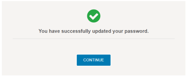 If successful, it will display that you have successfully updated your password on the screen and to click CONTINUE.