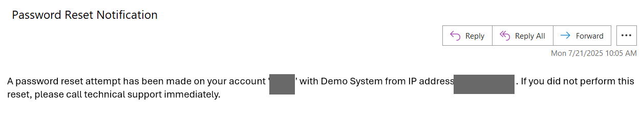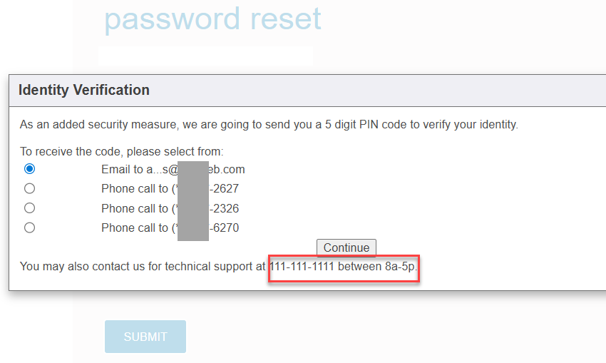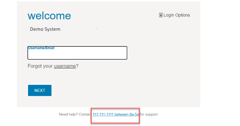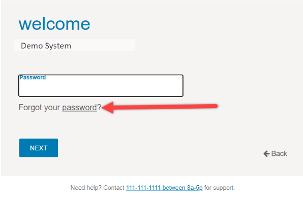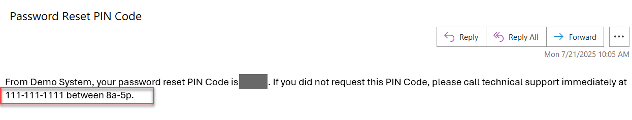 The system setting value (contents) for the system setting System / Tech Support / Phone Number will be visible on the password reset screens and email notifications. Please work with a Deployment Consultant to get this system setting updated to the verbiage and phone number needed for your system.