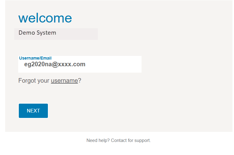 The user will key in their username, which is to be their unique email address, on the login screen. Then click NEXT.