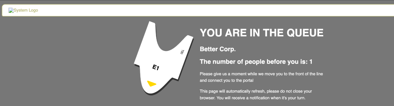 The Portal Virtual Waiting Room feature can be configured on db’s on RC202403 or newer. The Portal Virtual Waiting Room allows clients to mitigate the risk of high login usage by portal users. The virtual waiting room utilizes a queue that tracks login attempts in order received. The portal will display a message to end users letting them know they are in queue and how many people are in line ahead of them.