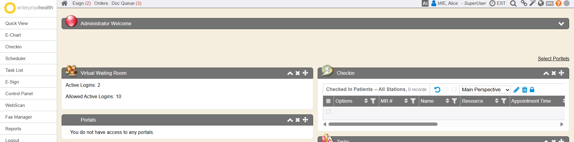 Allowed Active Logins: This is the max number of active logins (as defined in the System Setting). Allowed Active Logins accounts for all users. The setting should be expected clinic users + a reasonable number of portal users.
