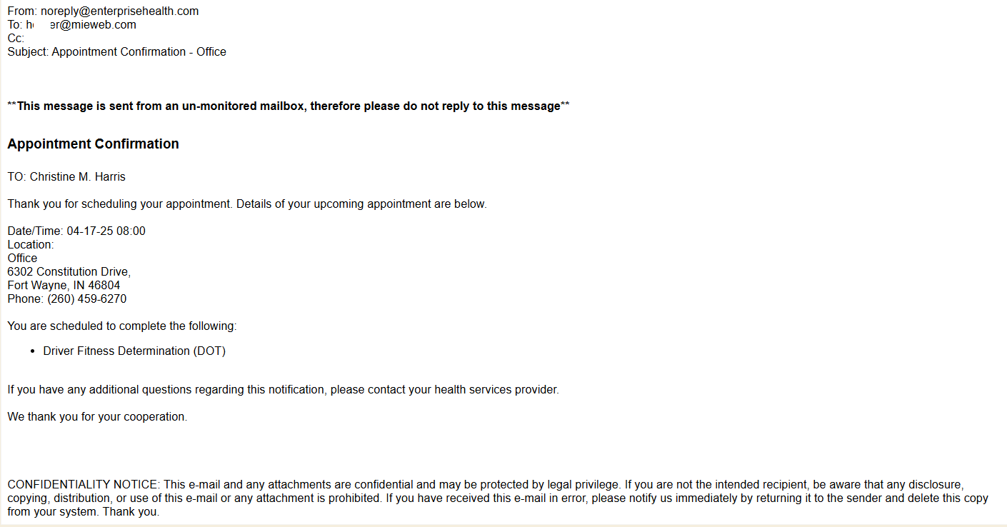- Additionally, the employee will receive the standard out of the box appointment confirmation email.