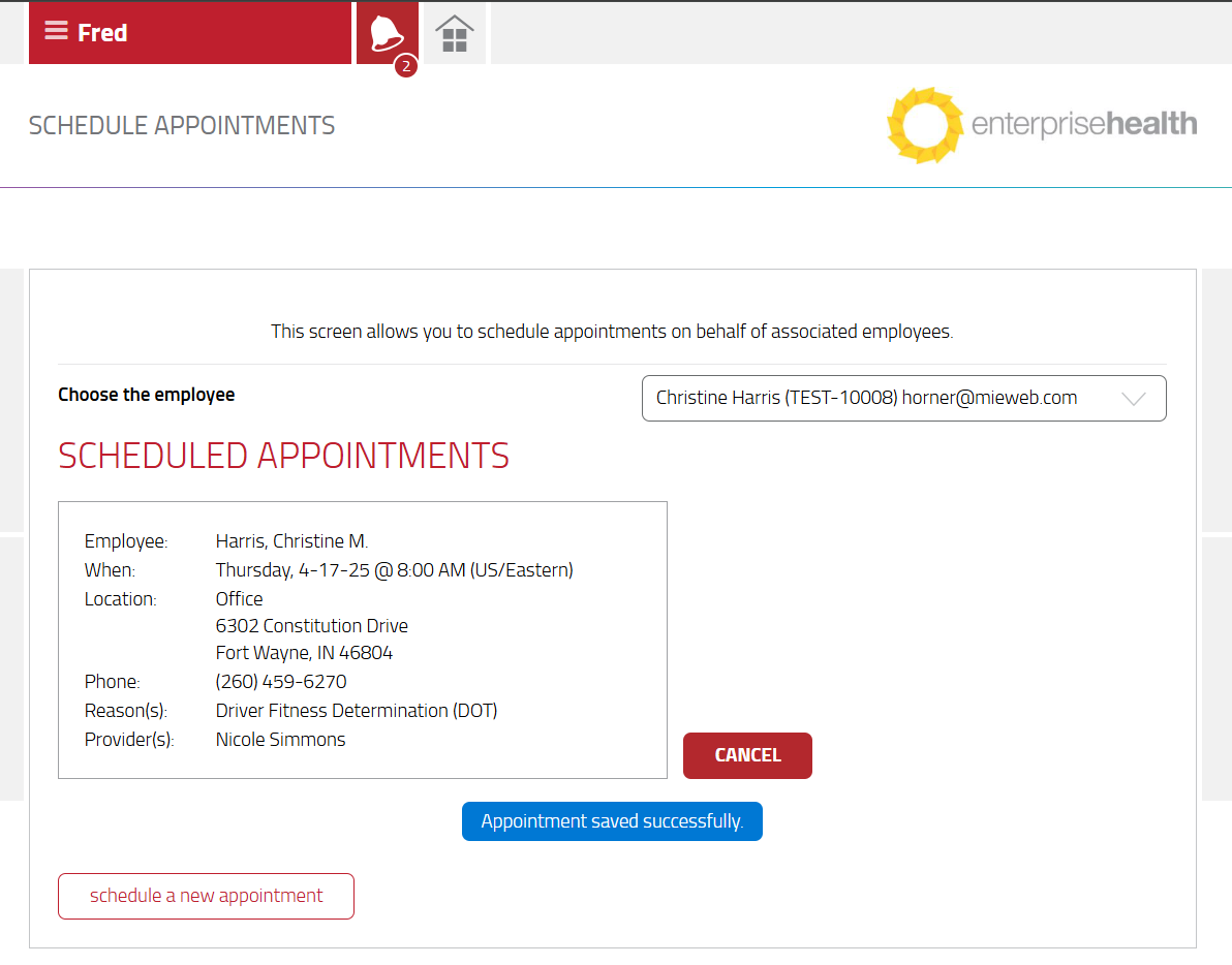 - After the appointment has been scheduled, the supervisor returns to the Schedule Appointments page to view scheduled appointments for the employee. The supervisor may navigate away to complete other actions or if needing to schedule for another employee, simply select another employee from the Choose the employee dropdown/autocomplete to select another employee.