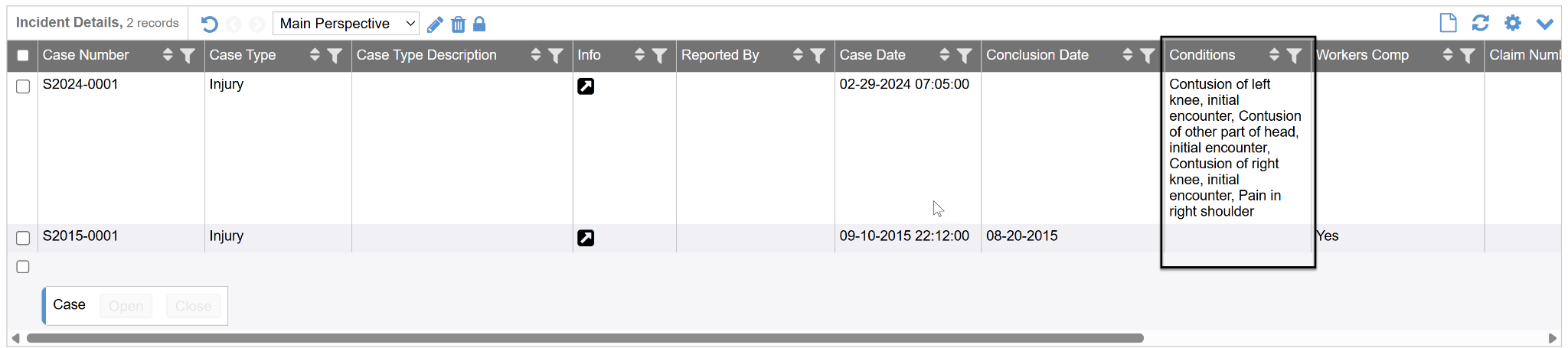 - Case Date: This displays the Date/time of injury or onset of illness for the case/incident. See Date Filters search filter field information in previous pages.