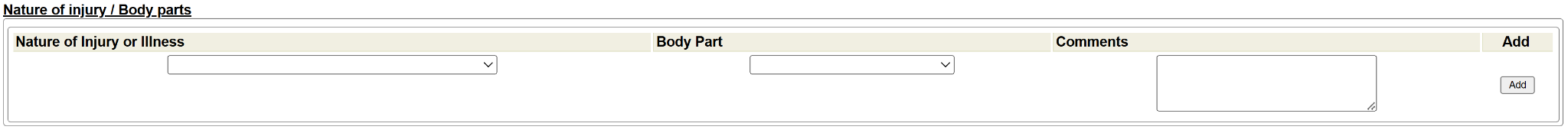 - Nature Injury: This displays the nature of injury or illness of the case/incident. See Nature of Injury or Illness filter field information in previous pages.