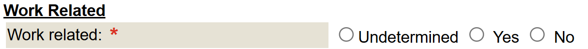 - This pulls from the field named Work Related that was captured in the case/incident section of an encounter. This is a required field when documenting a case/incident for a patient/employee.