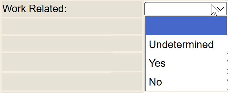 - OSHA Work Related: This is a drop-down search filter field. Our different OSHA work related determination choices available are listed here to run a report to filter by determination if needed.