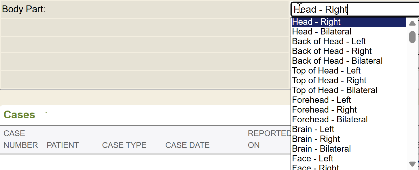 - This pulls from the field named Body Part that was captured in the nature of injury/illness section of an injury case/incident section of an encounter.