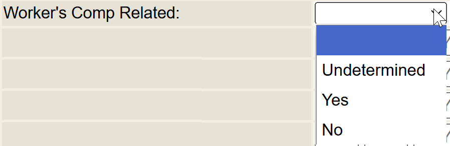 - Worker’s Comp related: This is a drop-down search filter field. Our different Workers’ comp related determination choices are listed here to run a report to filter by determination if needed.