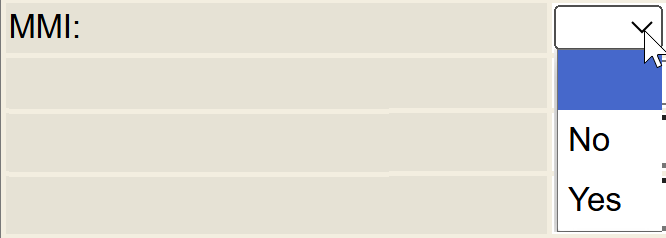 - MMI: This is a drop-down search filter field. Our different MMI choices available are listed here to run a report to filter by MMI if needed. PPI and/or MMI is not enabled by default in any system. Contact your MIE Implementer if you need to capture PPI and/or MMI details on cases/incidents.