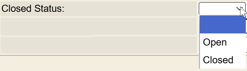 - Closed Status: This is a drop-down search filter field. Cases (incidents) for a patient/employee are listed in the dynamic Case section of an encounter or in the chart tab named Incidents. Cases are always marked as ‘open’ when a case is created for a patient/employee. Cases can then be marked as closed when the case is entirely closed. Cases can be closed manually, or if there is a workers comp interface, then their insurance may mark them closed and it gets changed to that in Enterprise Health automatically. A report can be run by filtering cases/incidents that are open or closed if needed.
